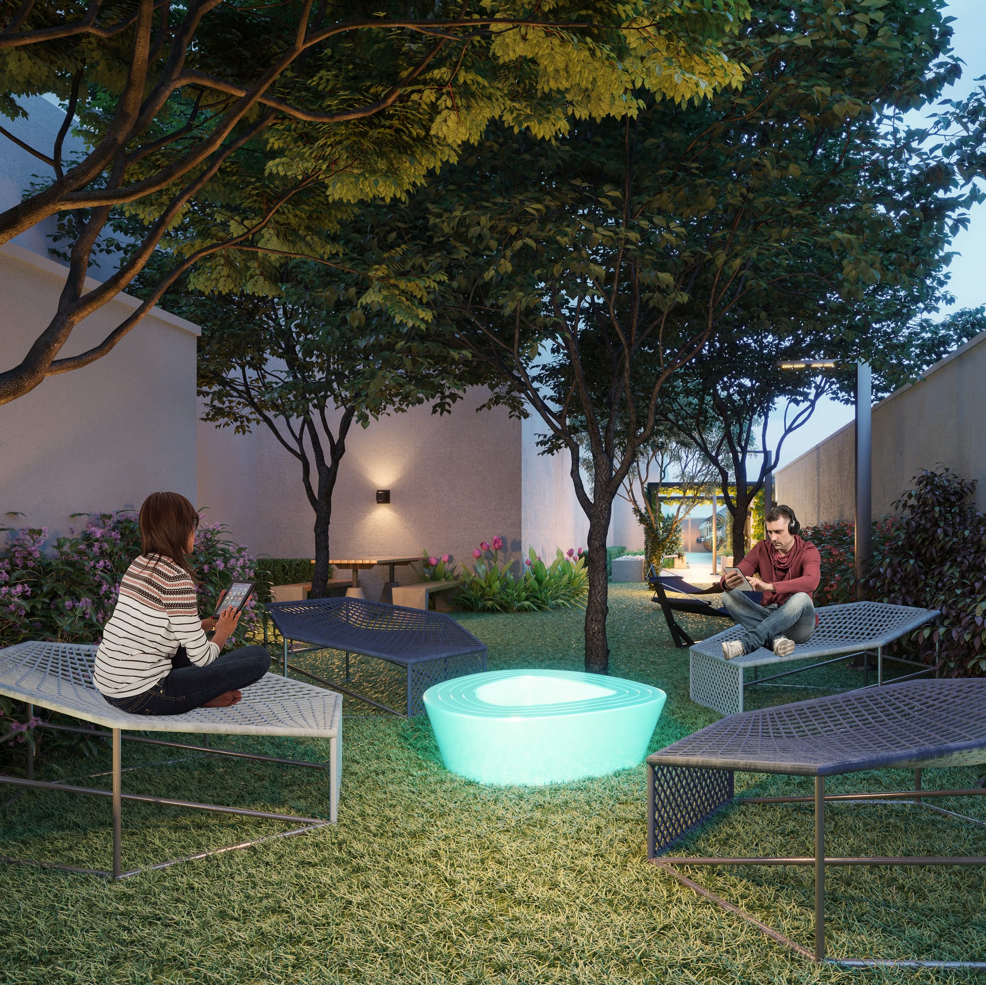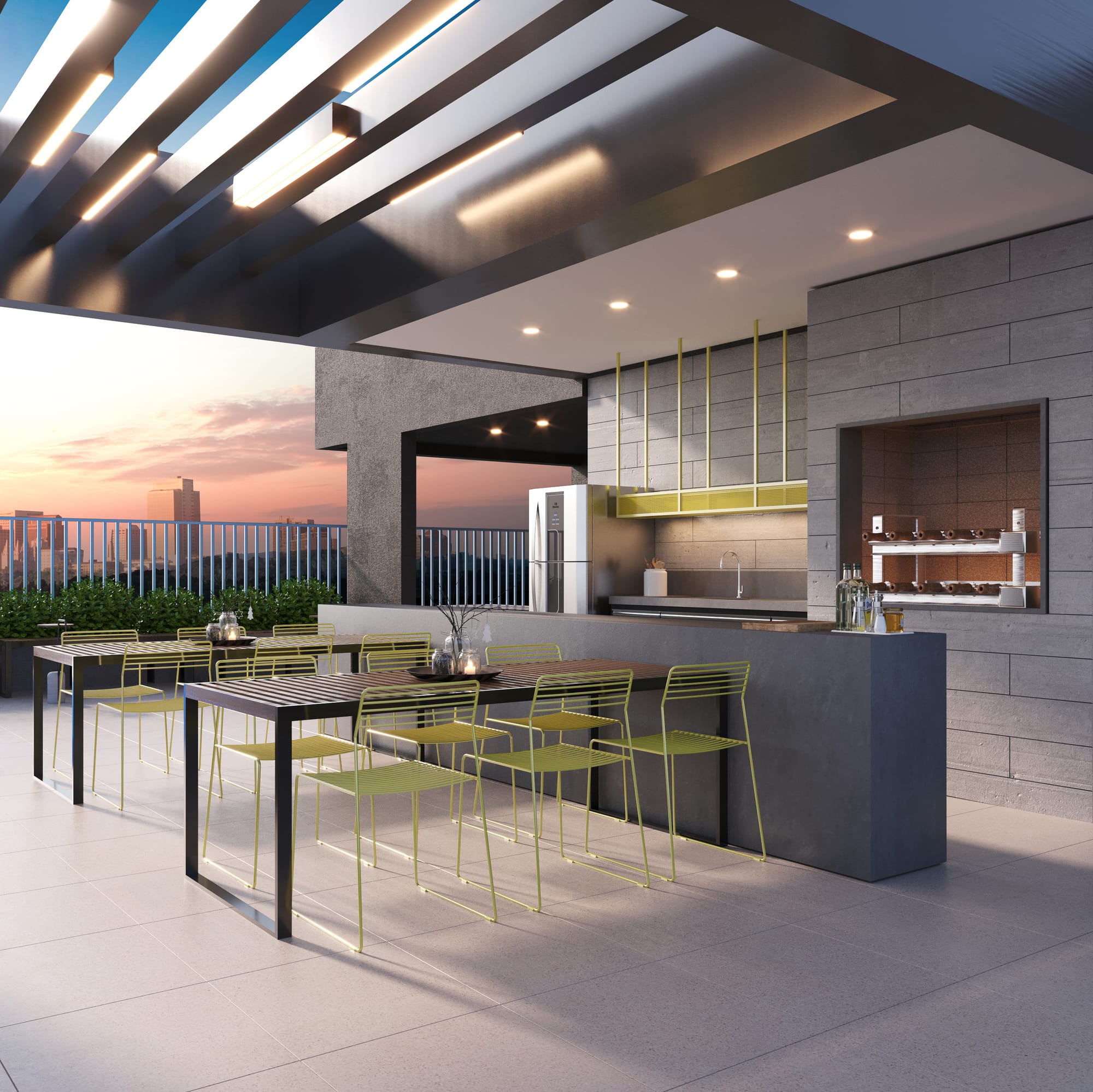 - Áreas de Convivência: Espaços pensados para o networking e o relaxamento, incluindo um coworking equipado, área de convívio externa com paisagismo e um terraço gourmet com vista para o skyline de Pinheiros.