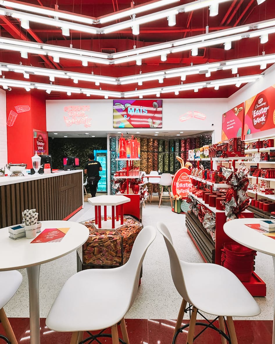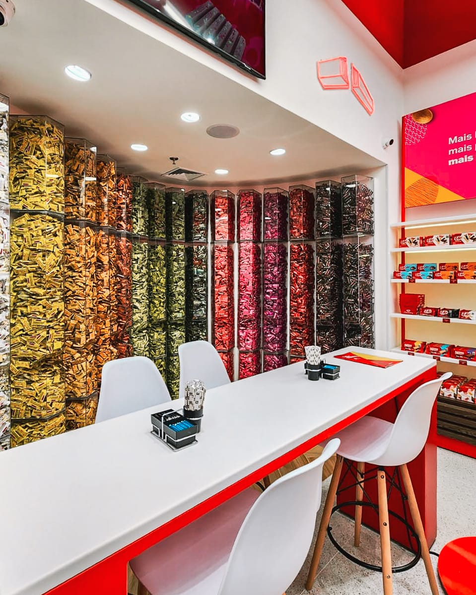 Cada detalhe foi pensado para amplificar o impacto visual da loja e proporcionar uma experiência de compra que conecta emoção, paladar e identidade de marca, reforçando o posicionamento da KitKat como uma marca jovem, divertida e inovadora.