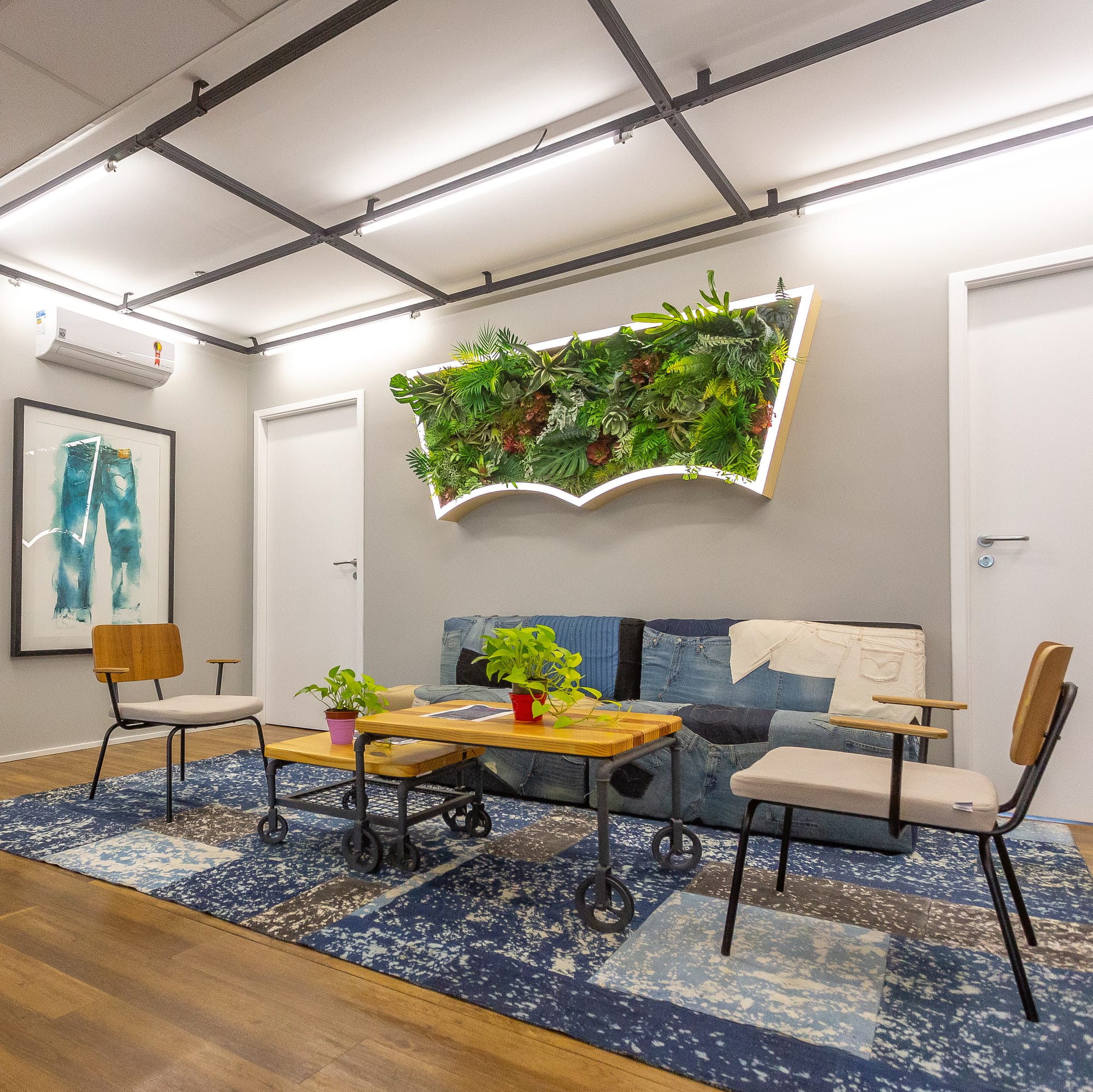 O projeto assinado pelo Estúdio P23 valoriza a simplicidade sofisticada da marca. Incorporamos materiais naturais, como madeira e cimento queimado, e elementos industriais que fazem referência direta à origem do jeanswear. O mobiliário foi pensado para garantir conforto e colaboração, com áreas abertas, salas de reunião com identidade visual própria e espaços de descompressão que equilibram trabalho e bem-estar.